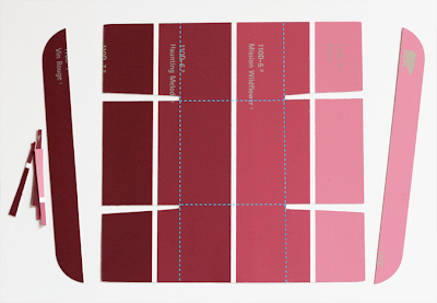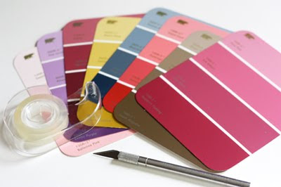 What you’ll need: paint swatches , double-stick tape, an X-acto knife, ruler, and cutting mat.