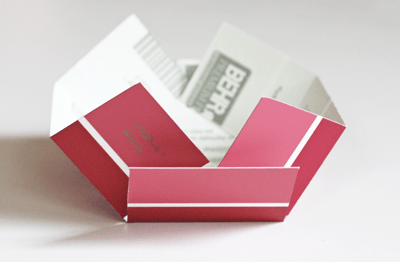 If you’ve got paint chips sitting around begging to be made into something, try folding them into boxes for paperclips, thumbtacks, party favor candies, rings, or tiny gifts. (Paint chips/swatches can be found at store with paint sections like Lowe’s, Home Depot, and Walmart.)